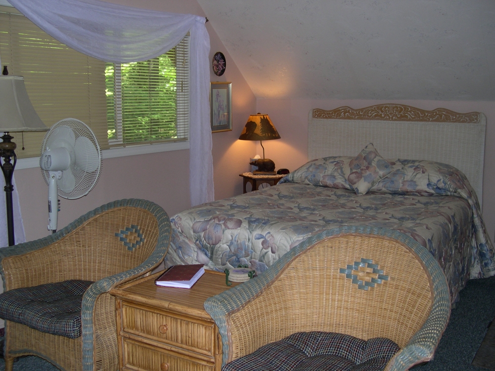 The Bear Iris Room is our country oriental style room with a beautiful "back to nature" view. Total tranquility!!